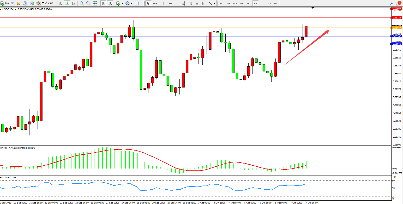 美元瑞郎USDCHF——4小时K线图显示: