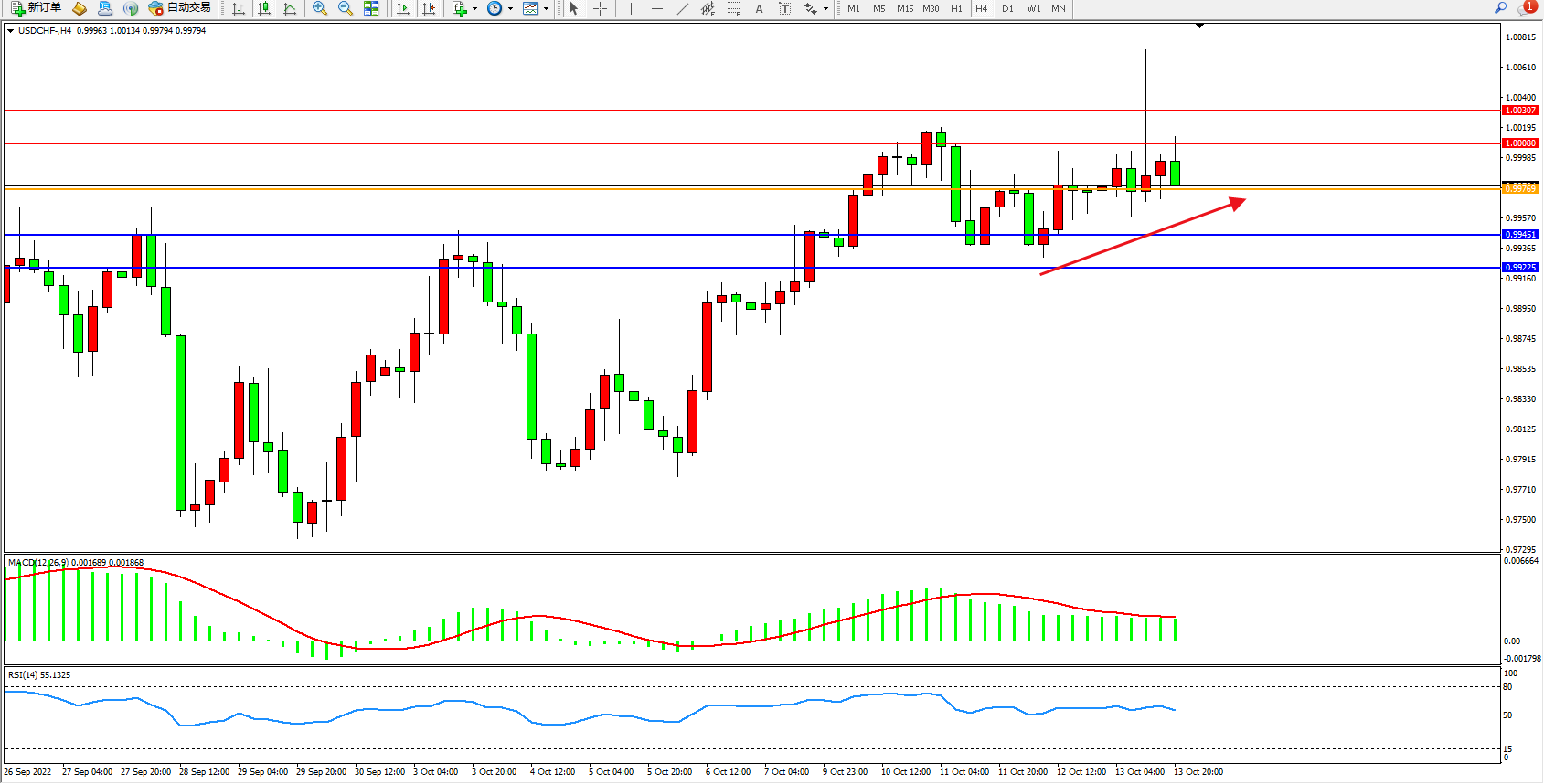 美元瑞郎USDCHF——4小时K线图显示:
