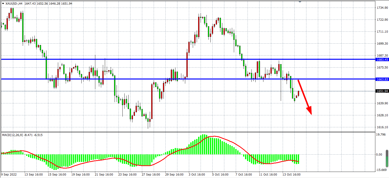 交易策略:在1663.00 之下看跌,目标1630.00 1615.00