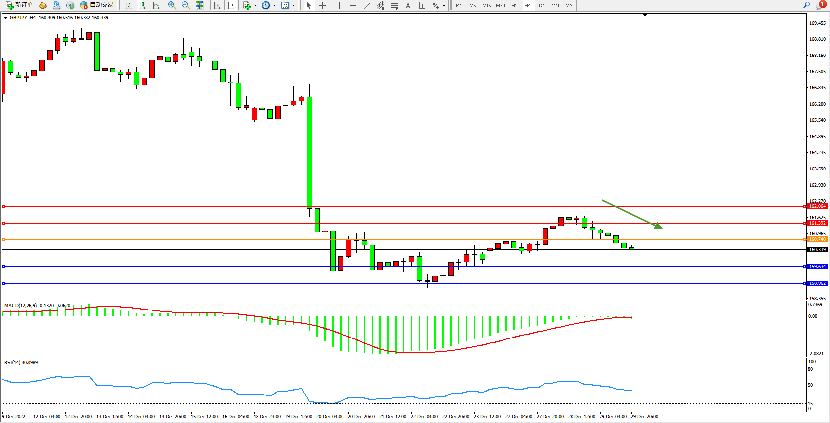 交易策略:160.740下方看跌,目标159.634、158.962