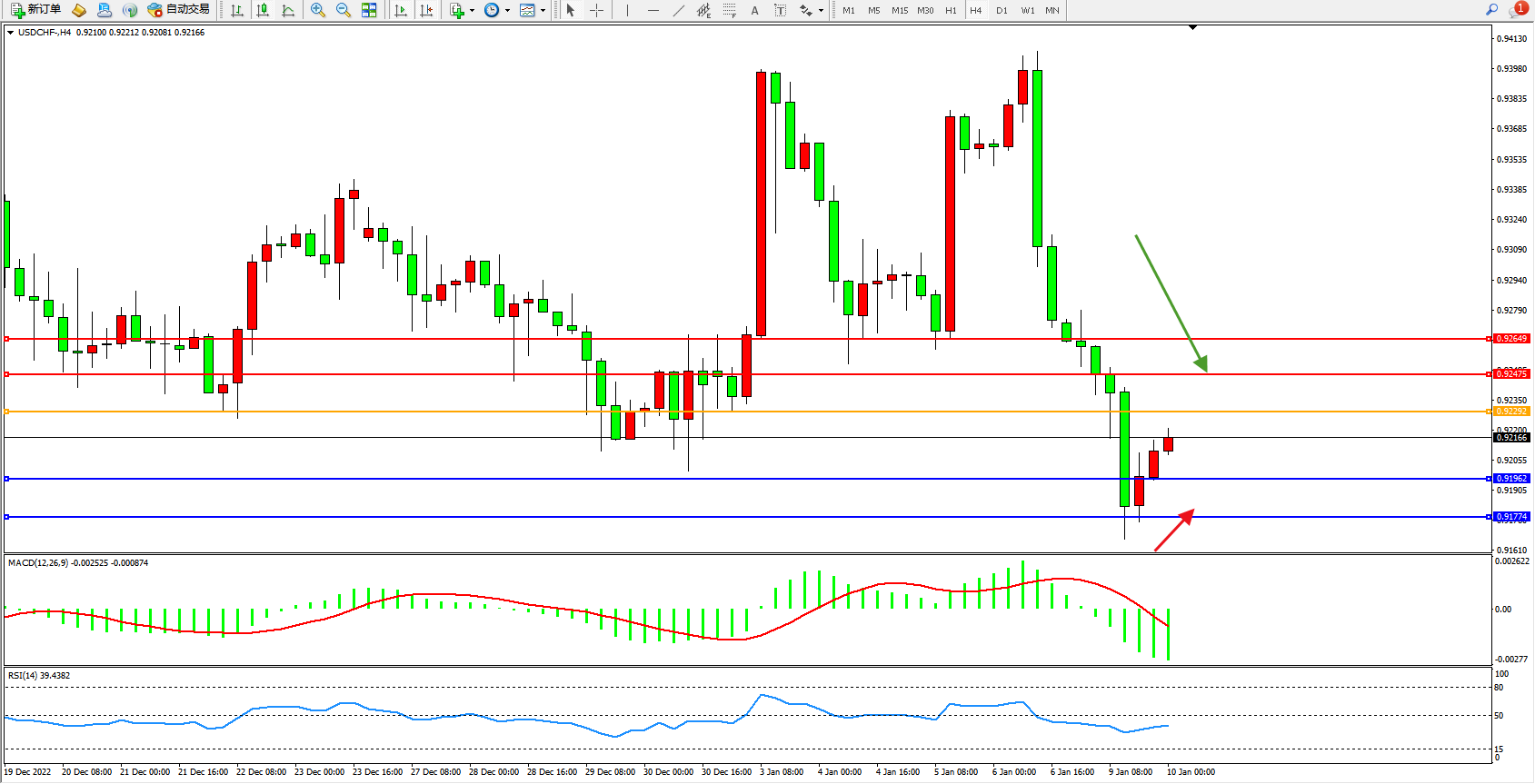 美元瑞郎USDCHF——4小时K线图显示: