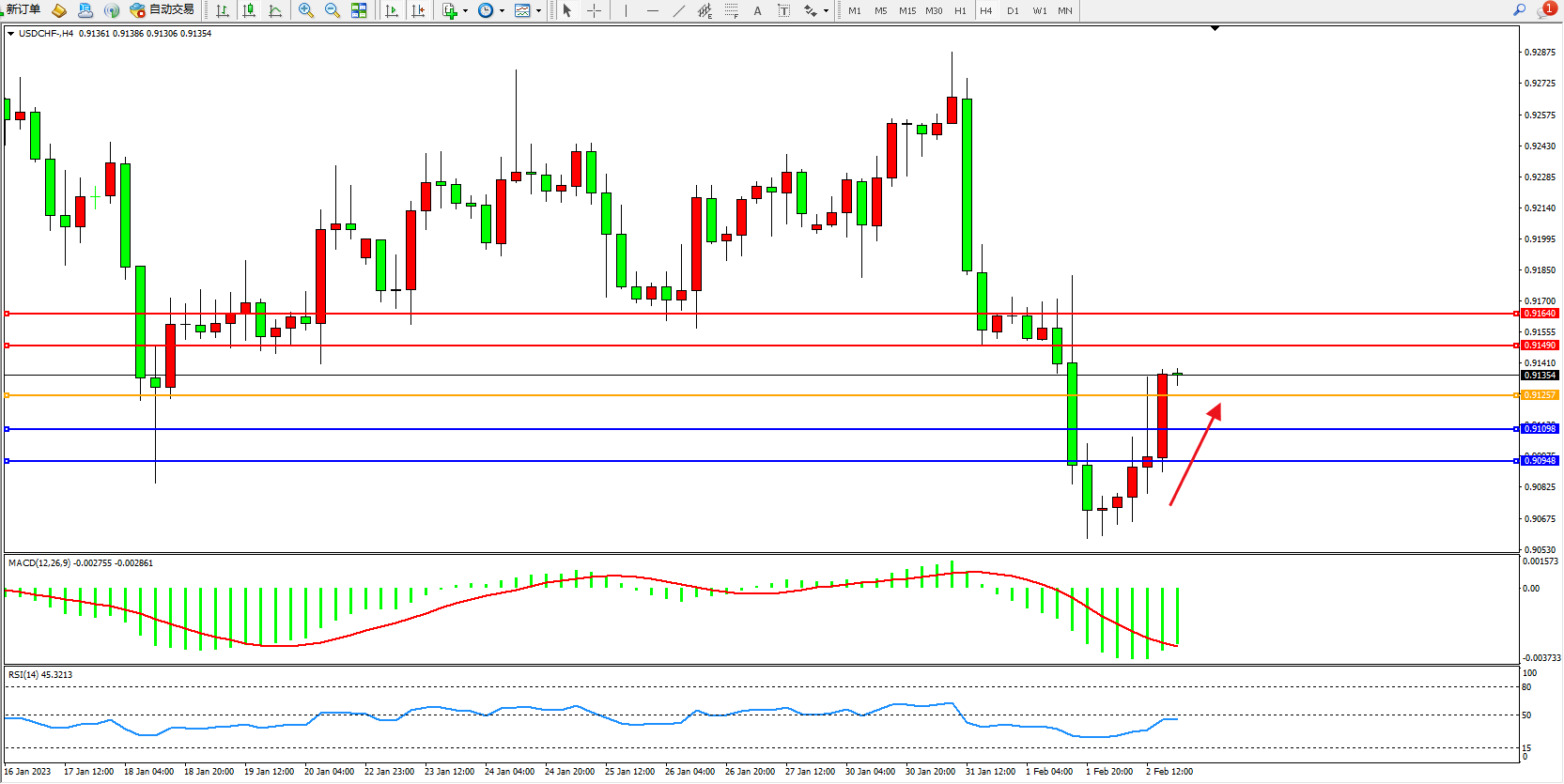 USDCHF:低位拉升 USDCHF  XAUUSD