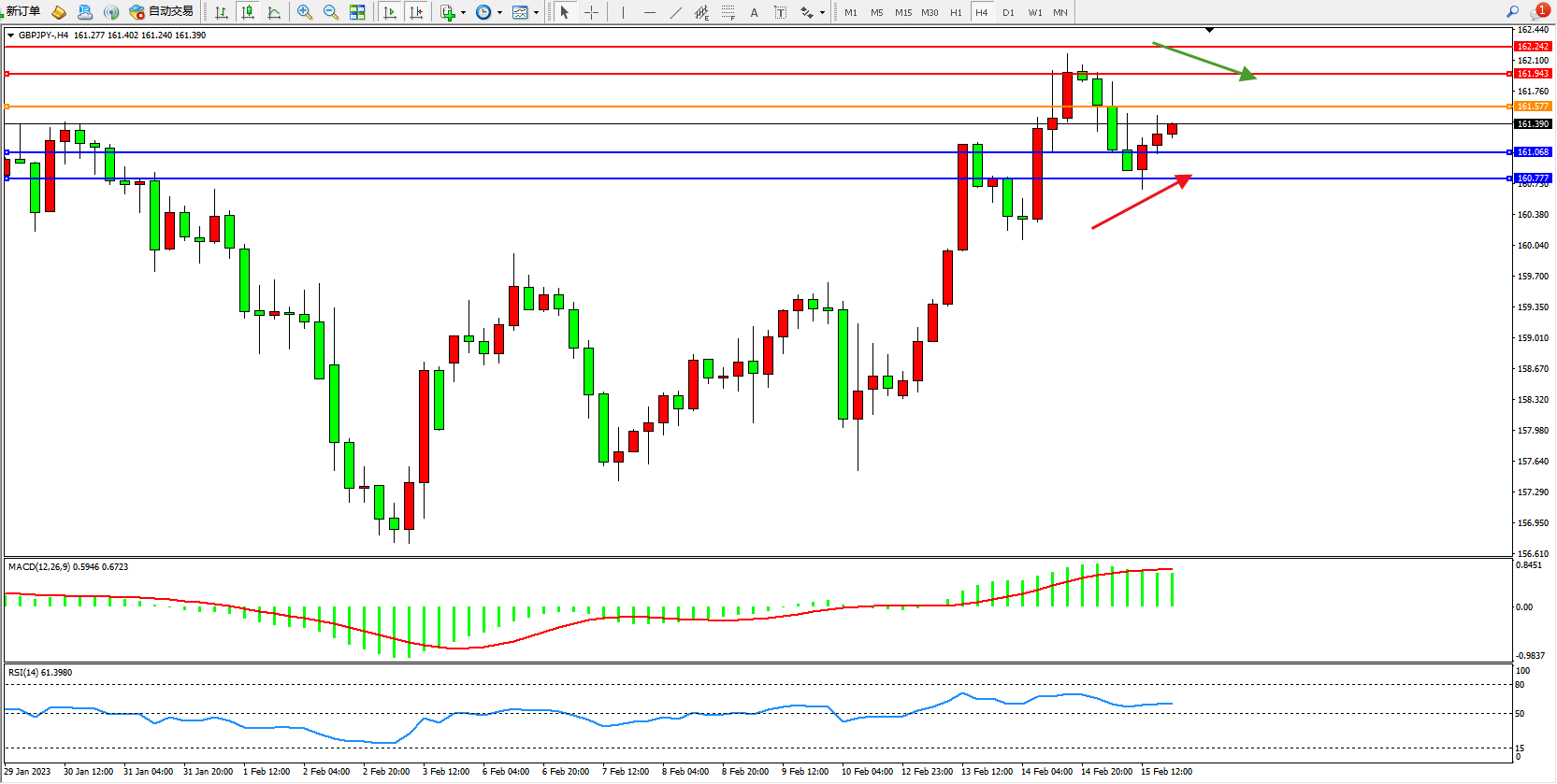 备选策略:161.577上方看涨,目标161.943、162.242