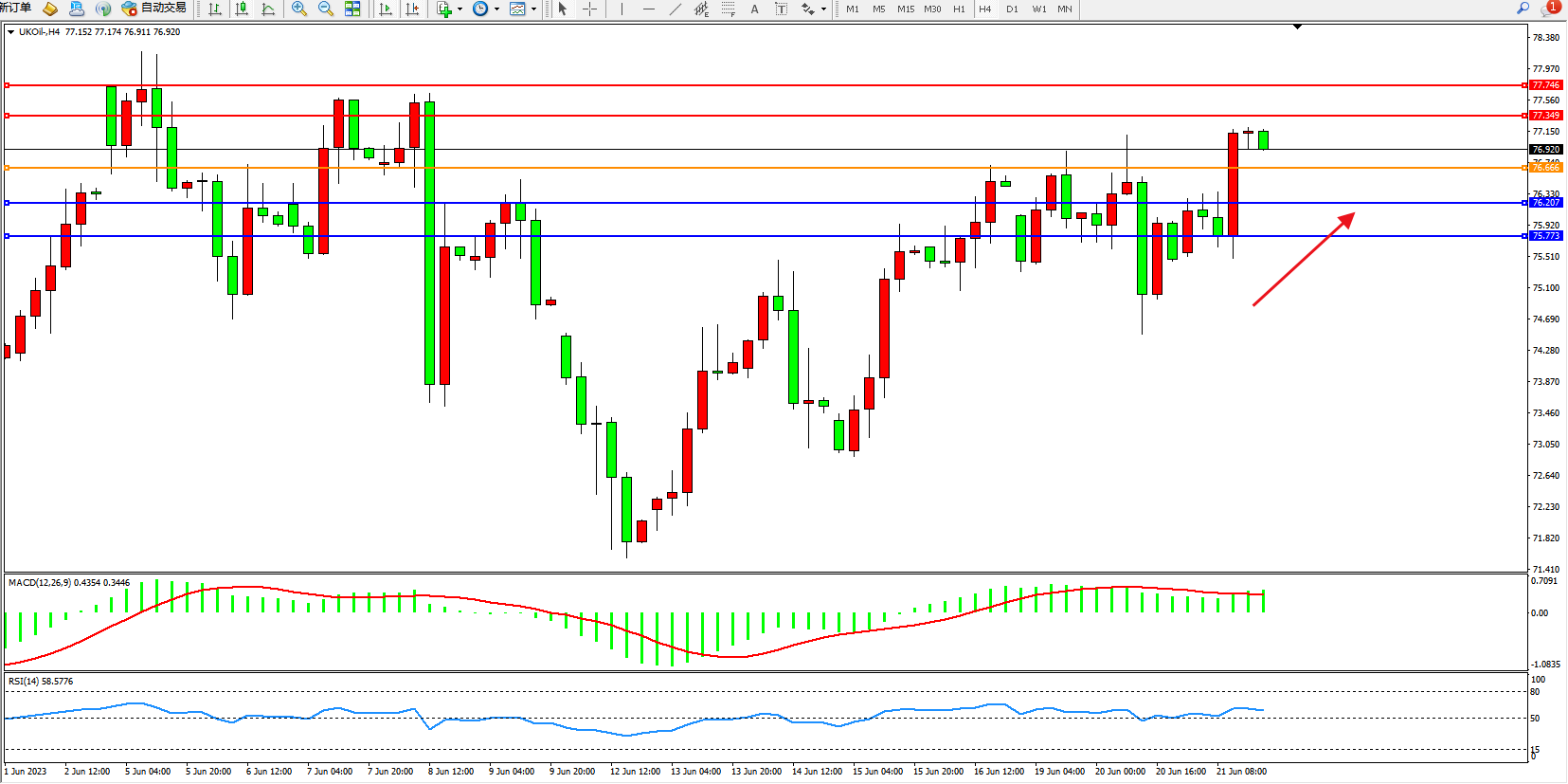 布油UKOil——4小时K线图显示: