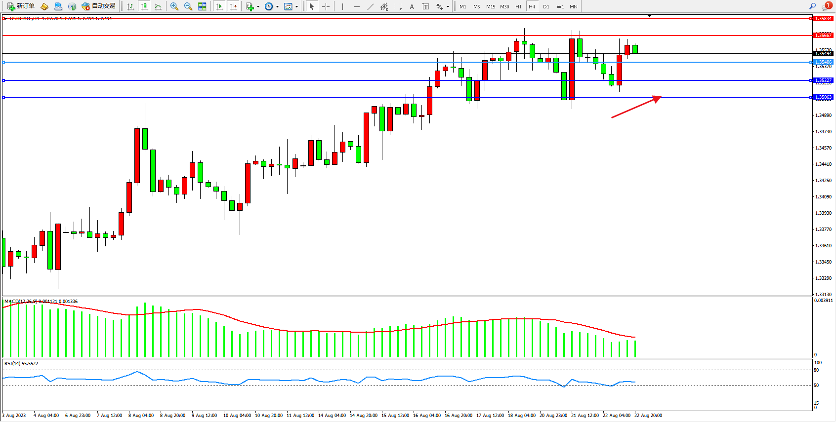 4小时图看:高位多头动力维持区间震荡,市场多头情绪有继续向上移动迹象,MACD指标处于多头区域维持整理,RSI指标处于50均衡线上側徘徊;