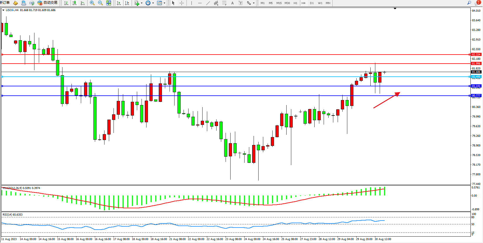 原油维持81.686附近震荡,美国8月25日当周EIA原油库存 -1058万桶,预期 -219.1万桶(彭博用户预期 -680万桶),前值 -613.4万桶。美国8月25日当周EIA库欣地区原油库存 -150万桶,前值 -313.3万桶。