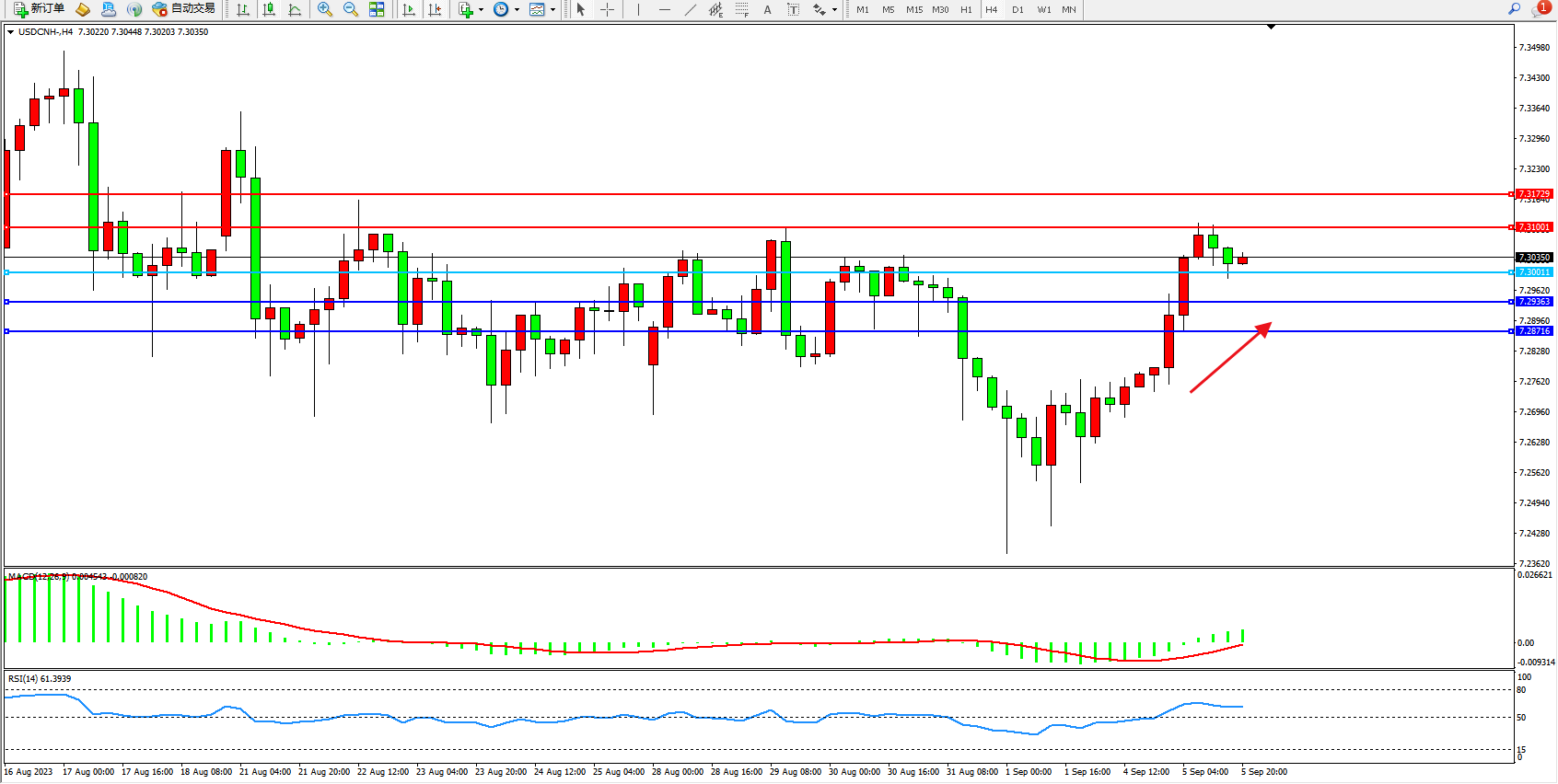 交易策略:7.30011上方看涨,目标7.31001 7.31729