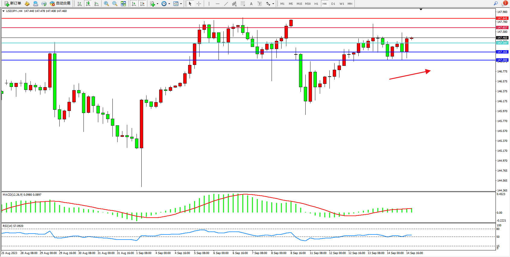 交易策略:147.347上方看涨,目标147.657  147.845