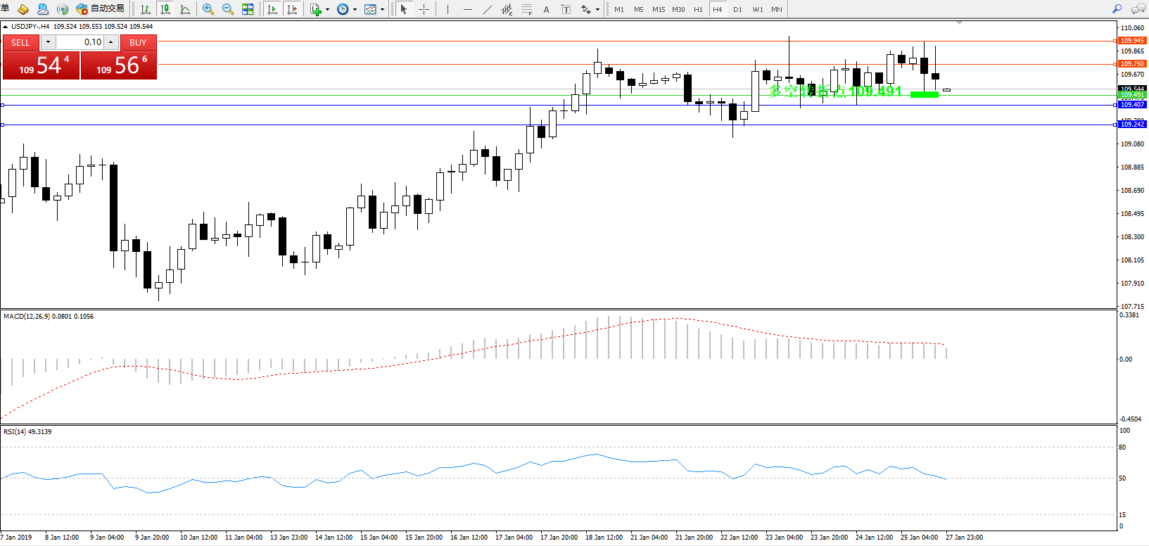 交易策略:109.491上方看涨,目标109.750、109.945