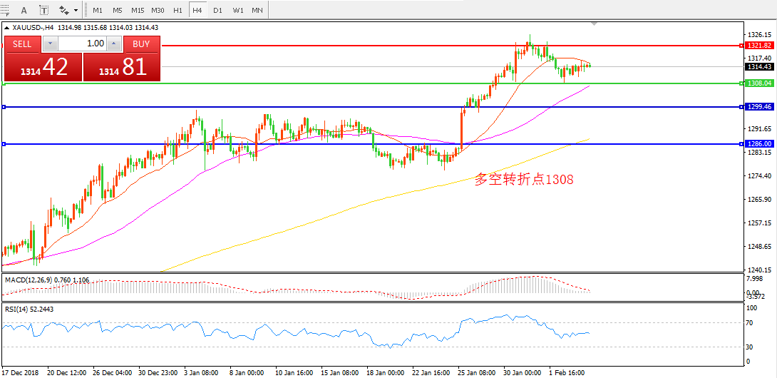 交易策略:在1308.00之上看涨,目标1320.00  1330.00