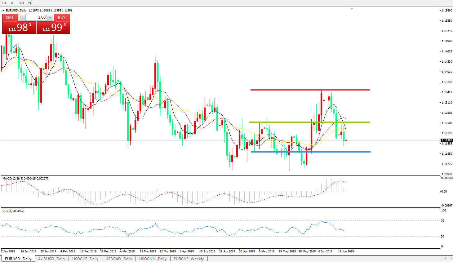 德拉基讲话“鸽”声嘹亮,欧洲央行再度提及降息可能性。欧洲央行行长德拉基表示,如果经济前景和通胀预期没有改善,将需要额外的刺激措施。其中,进一步下调政策利率以及采取缓解措施控制可能的副作用,依然是央行的工具之一。当日公布的欧元区5月CPI月率录得低于预期,暗示通胀疲软状况将持续。