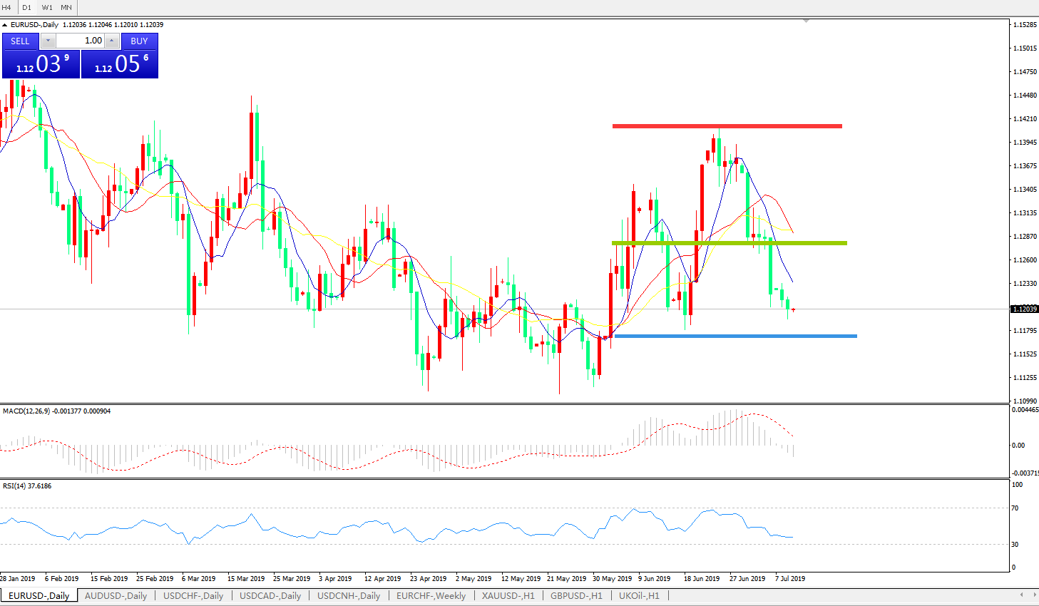 欧元兑美元EURUSD   日线图: