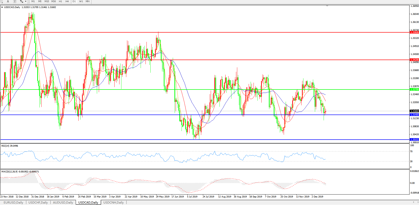 美元兑加元USDCAD    日线图: