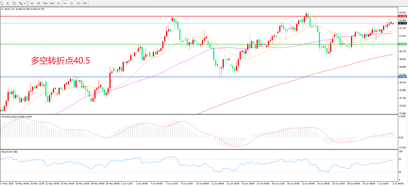 周四(7月2日),6月美国非农就业人口增加480.0万人,表现大幅好于预期和前值,提振了市场上的风险情绪,布伦特原油延续高位震荡,收报42.74美元/桶。美国冠状病毒感染病例二度激增加剧了人们对未来济的担忧,油市需求仍然取决于防疫的进一步变化。