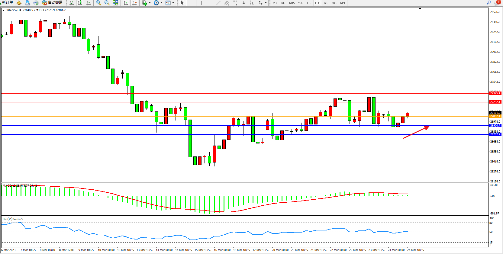 交易策略:27052上方看涨,目标27252  27375