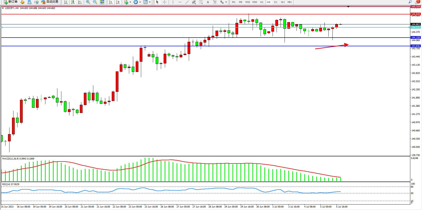 阻力位:145.039  145.319